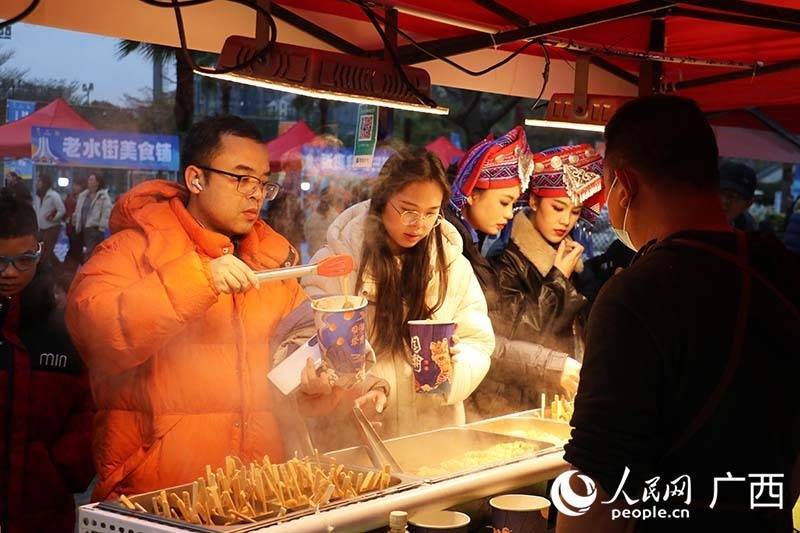 小吃摊位前排起长龙。东说念主民网 刘璐瑶摄