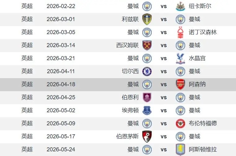 终末灵魂发问,看完阿森纳和曼城的本赛季英超剩余赛程,你看好谁夺冠呢?是师父更胜一筹?仍是门徒青出于蓝而胜于蓝?